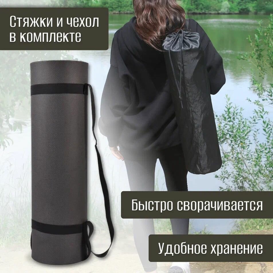 10 цен на Коврик эва туристический спортивный тактический 190х60х0,9 см для похода, рыбалки, отдыха на природе, черный
