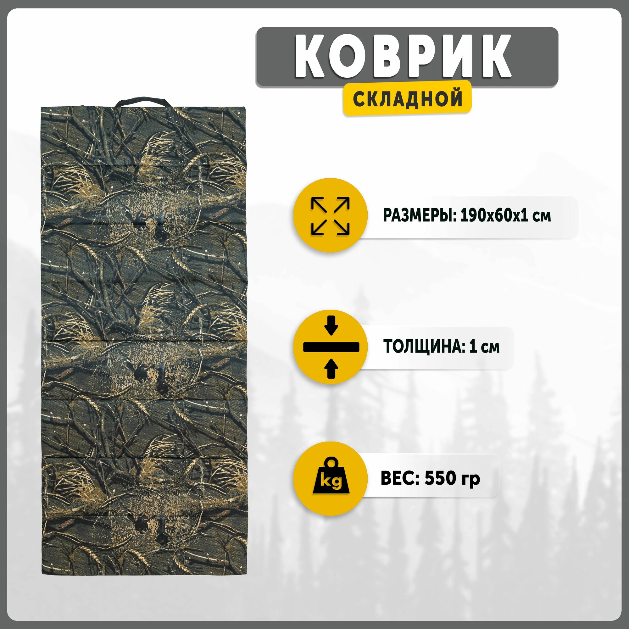 FOLDING CAMO MAT M Коврик складной, 190x60x1 см, камуфляж информация: