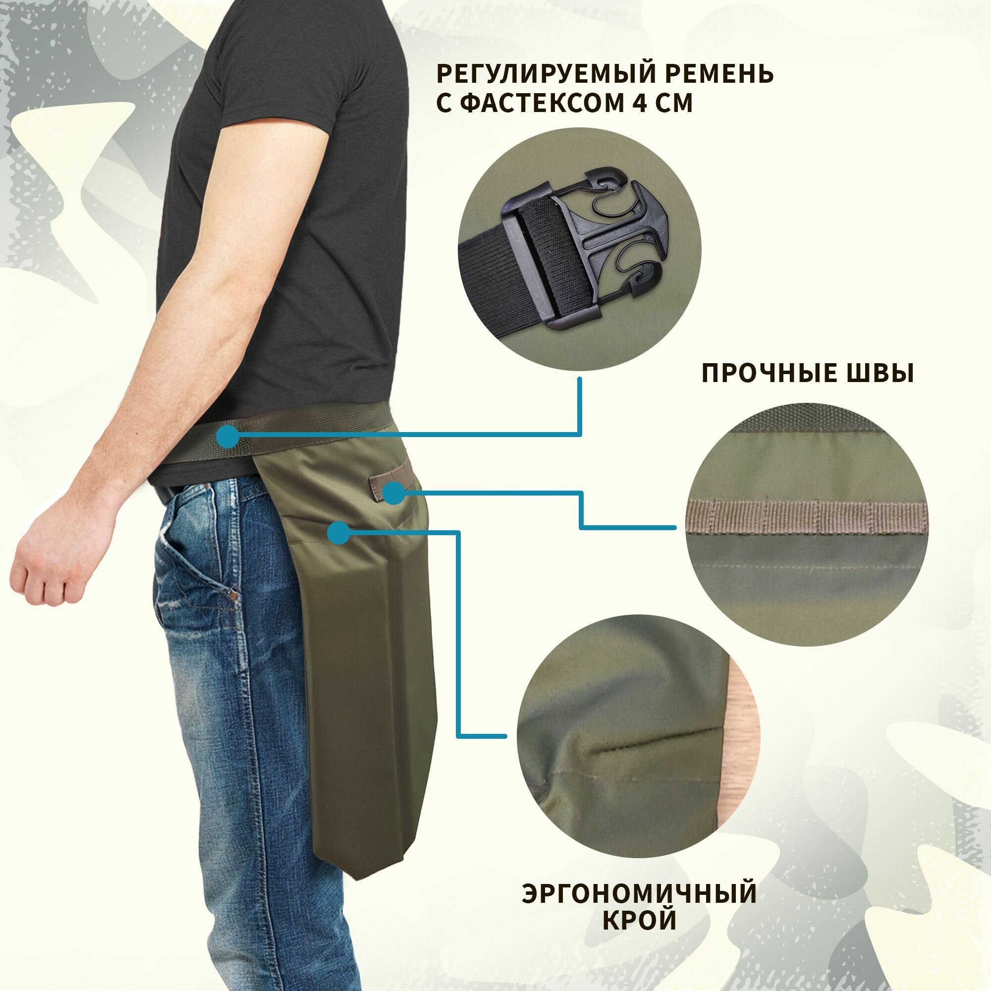Сиденье туристическое "Premium", эргономичная сидушка пятиточечник, хоба, толщина 2 см, Хаки олива информация: