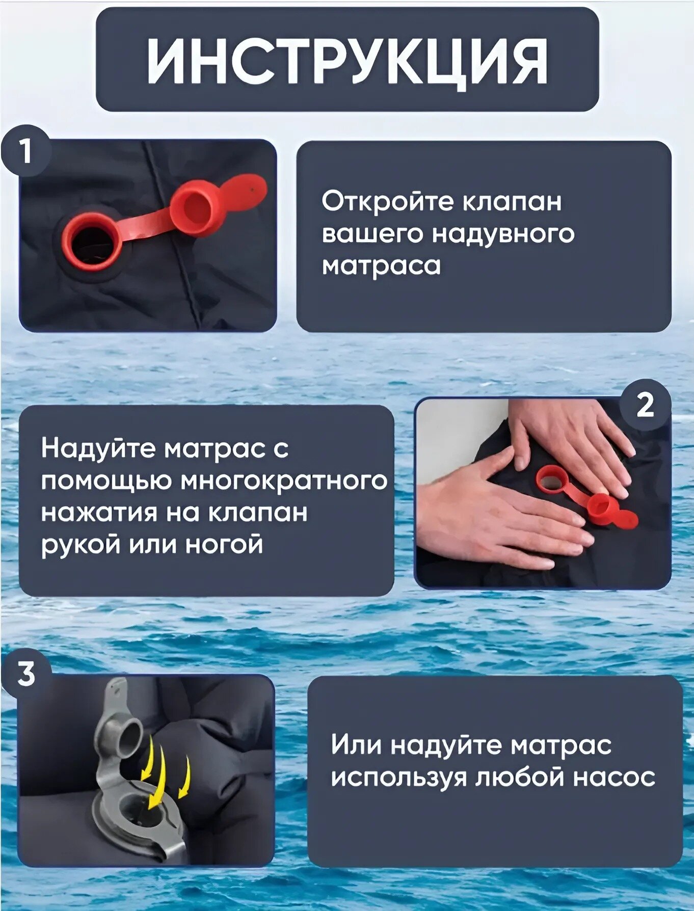 Коврик туристический самонадувающийся с подушкой и встроенным насосом, синий 2 699 ₽