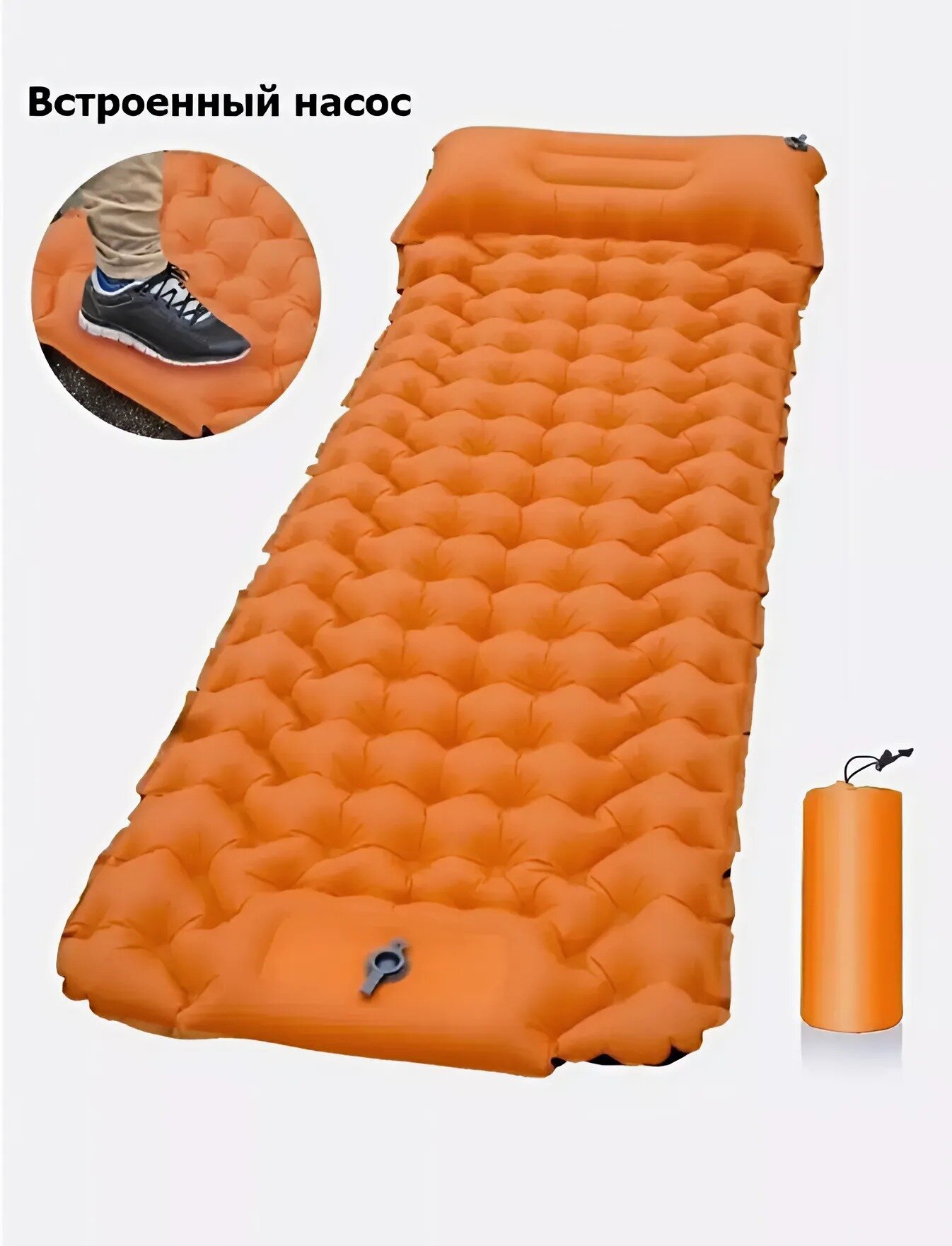 Коврик туристический самонадувающийся с подушкой и встроенным насосом, оранжевый информация: