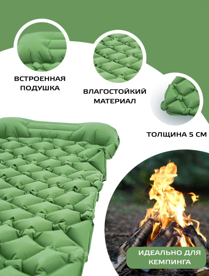 Отзывы на Коврик туристический самонадувающийся с подушкой и встроенным насосом, зеленый