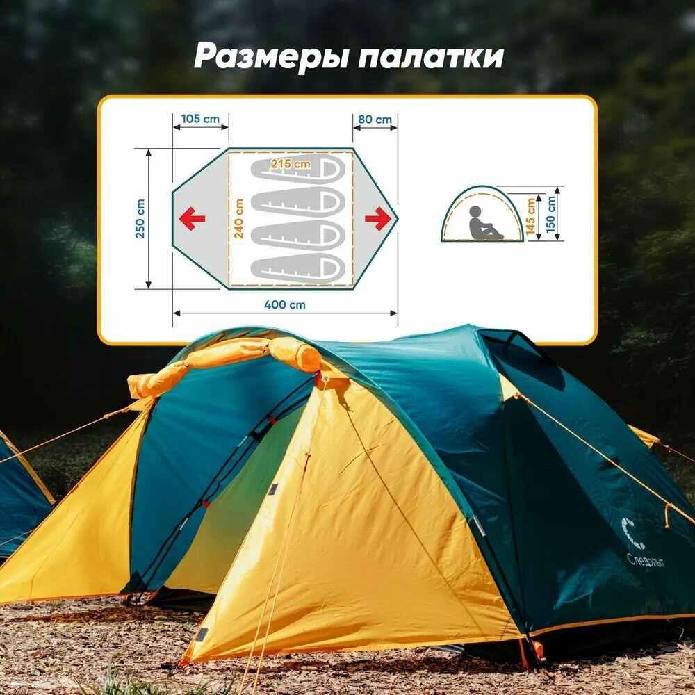 Палатка летняя двухслойная "следопыт- Selenga 4 с 2 входами, четырехместная информация: