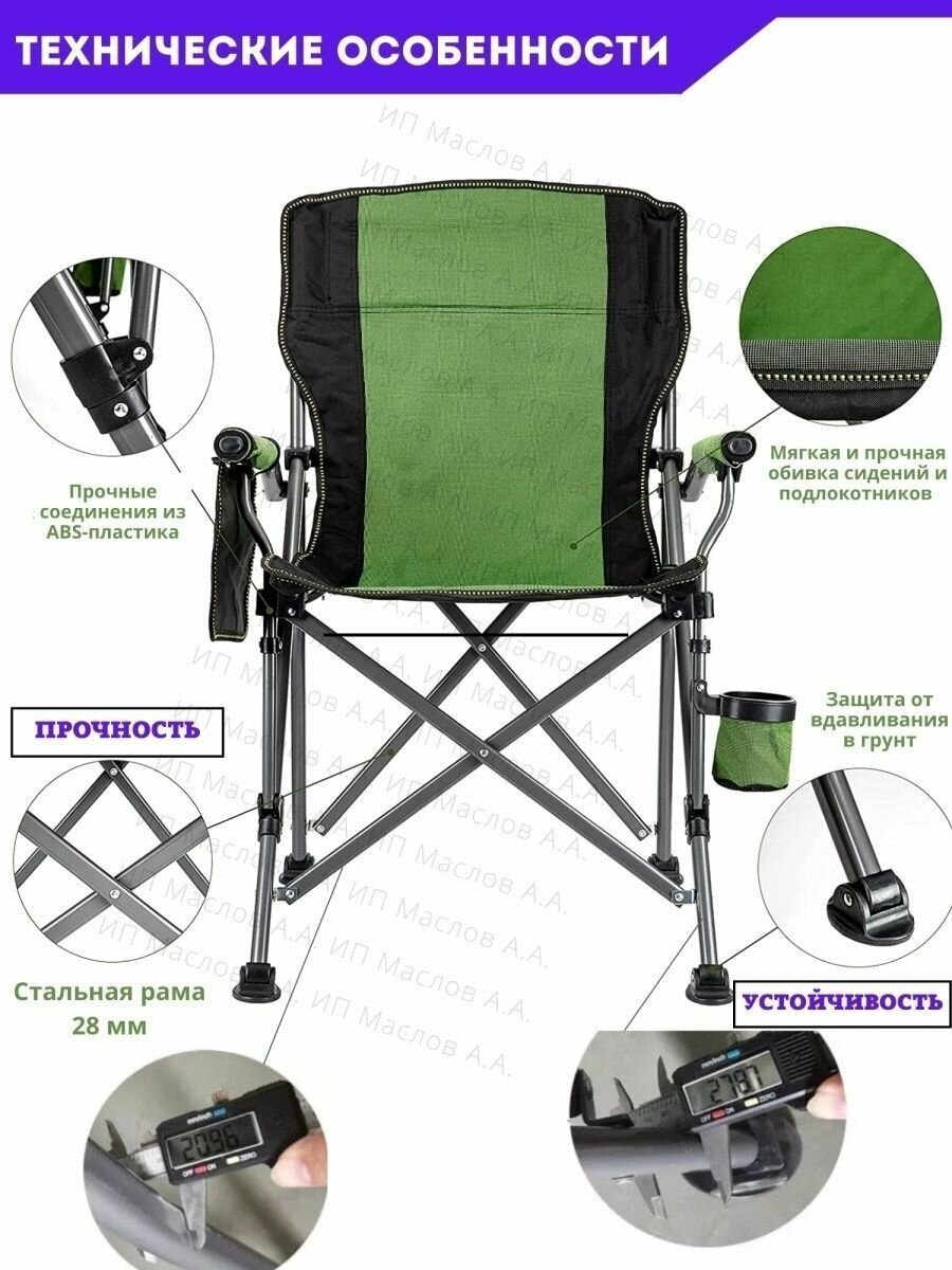 Кресло туристическое для рыбалки для пикника с подстаканником, термосумкой, и двумя карманами 6 800 ₽