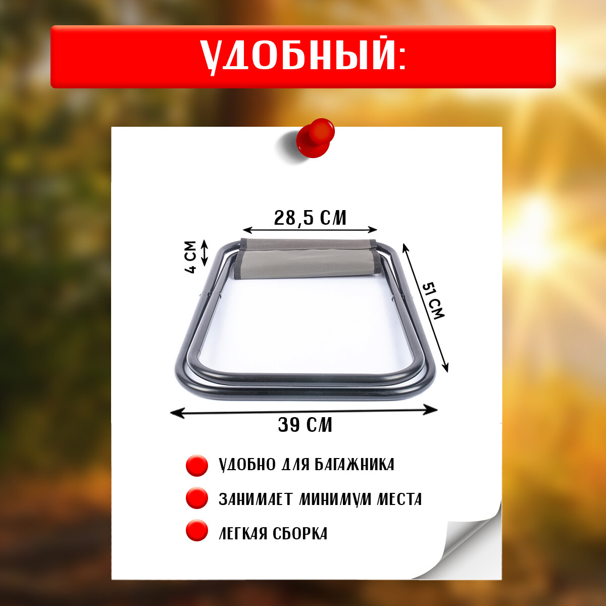 | Размеры в сложенном виде (ВxШxГ) | 4x39x51 см |