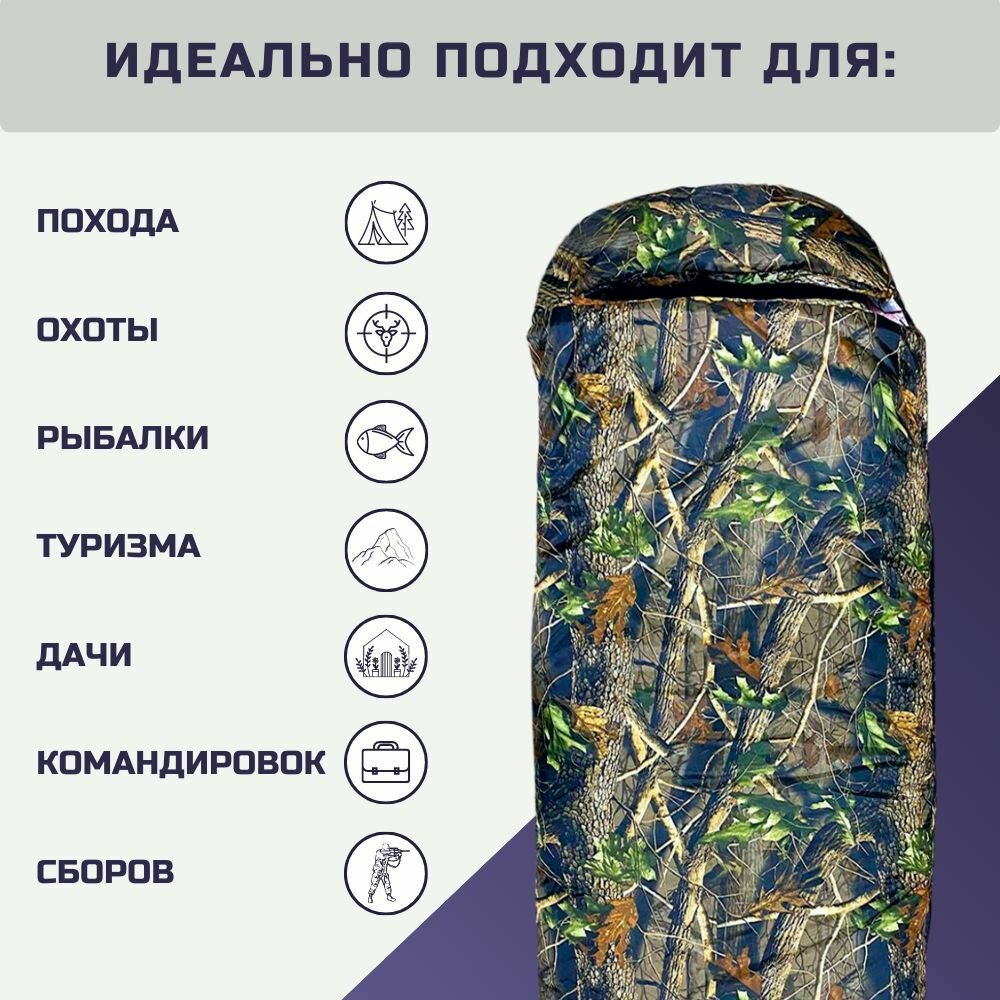 Спальный мешок Оксфорд 350 непромокаемый туристический c капюшоном, от -15 до +15, 215х75 см, by MAD SWAMP, спальник на 4 сезона