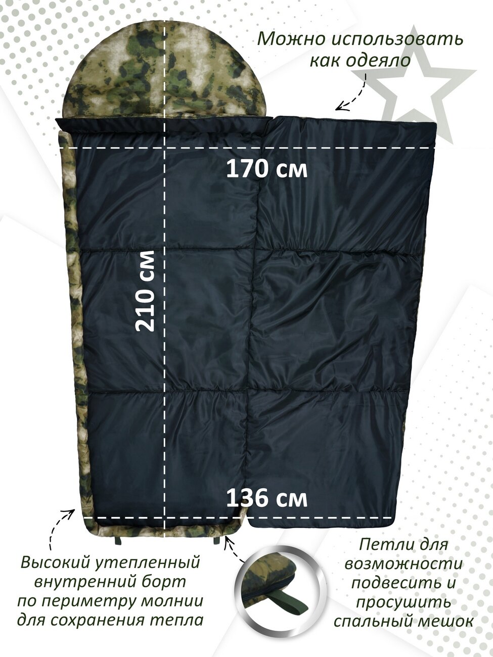 10 цен на Спальный мешок армейский "Ратник-ПМ". Цвет: мох зеленый.