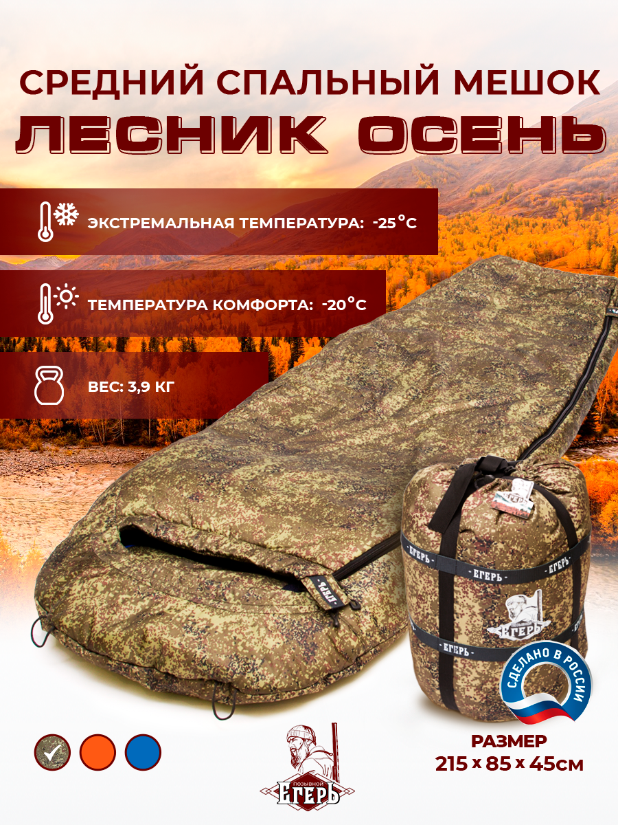 Спальный мешок туристический, походный спальник лесник осень информация: