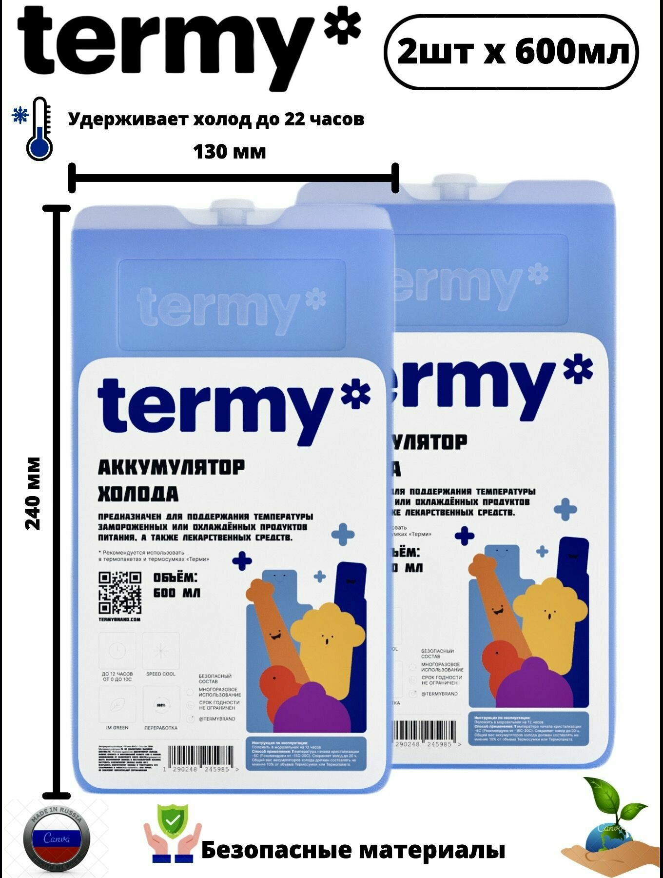 10 цен на Аккумулятор холода гелевый, хладоэлемент для термосумки termy (терми) 600гр 2шт