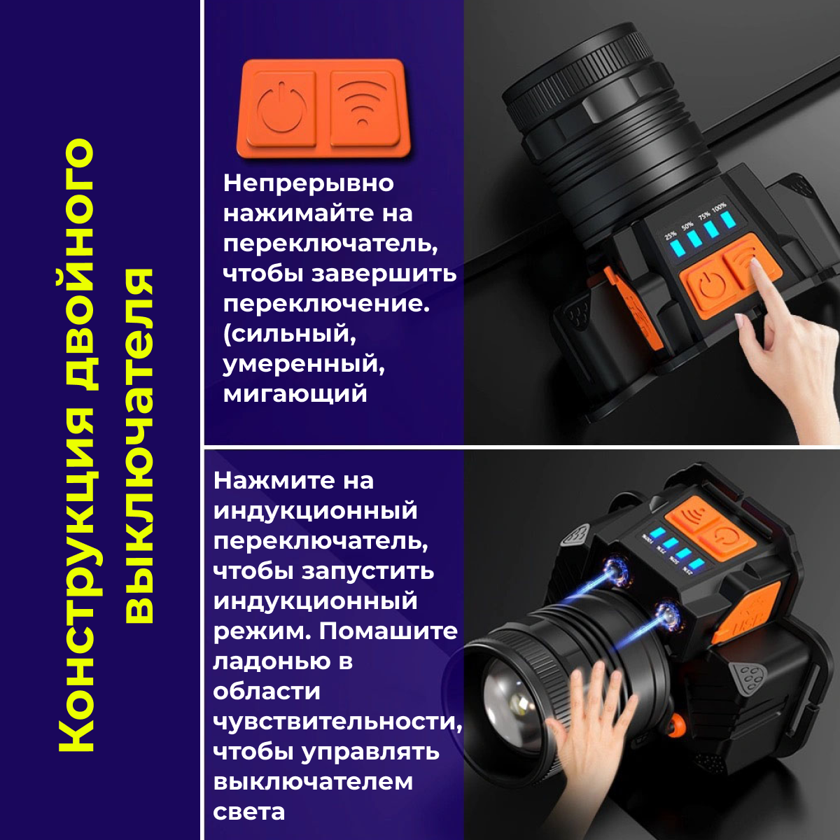 Налобный фонарь светодиодный мощный, фонарь Power bank, фонарик с встроенным аккумулятором, яркий фонарь с углом наклона информация: