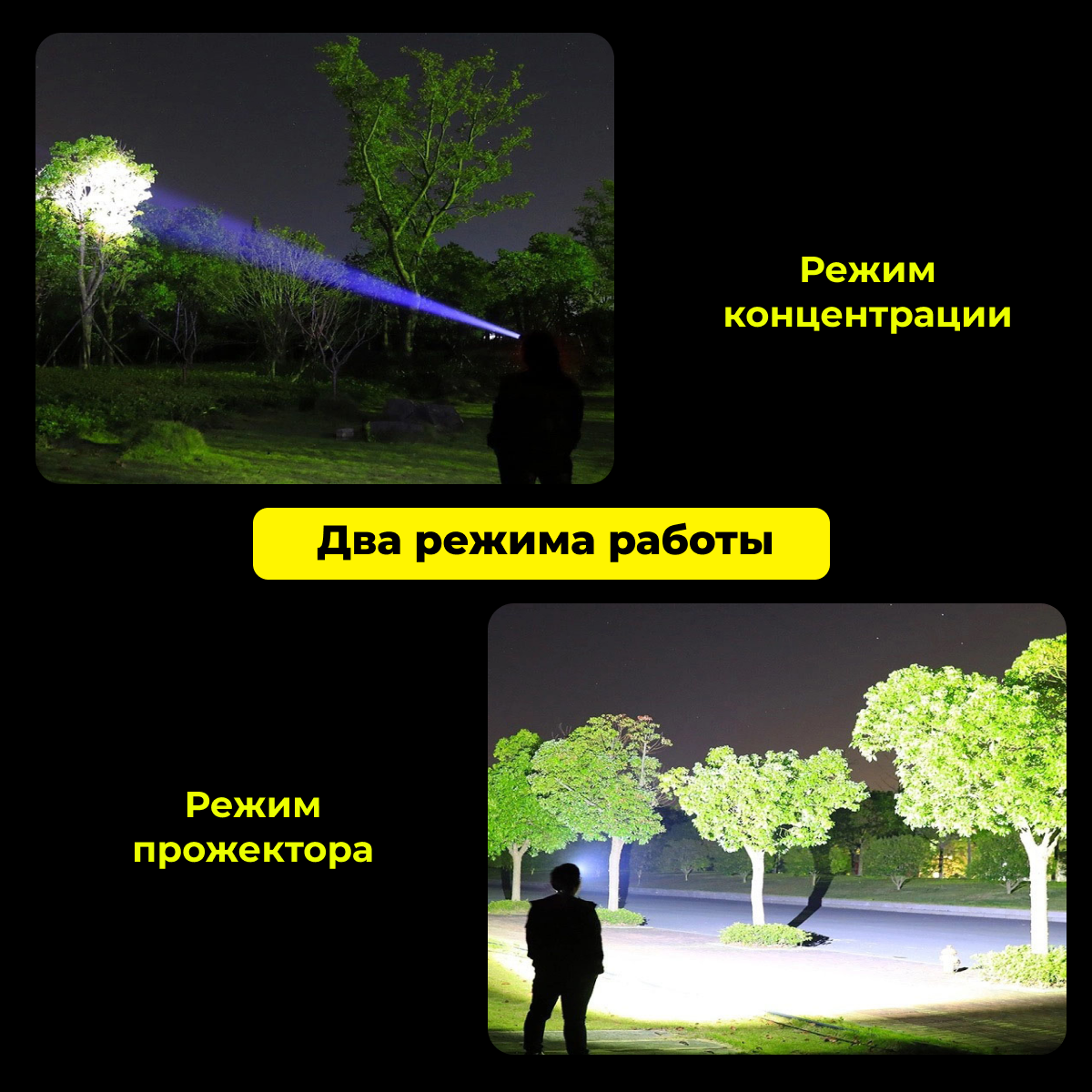 Мощный светодиодный фонарь на аккумуляторе, из металла, с фокусировкой луча, Annsna AS-108