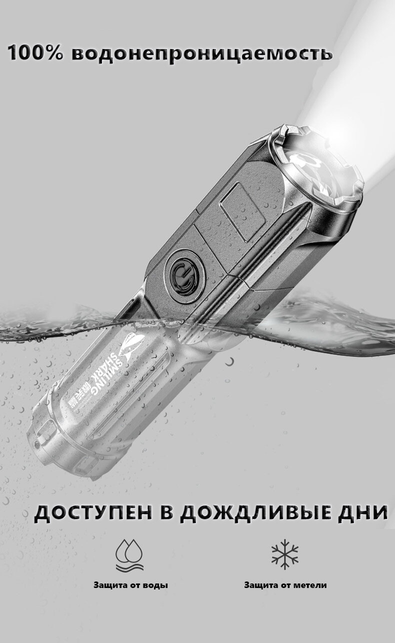 Многофункциональный бытовой фонарь MyPads A225728 с зарядкой usb и встроенным аккумулятором, водонепроницаемый противоударный, дальнобойный информация: