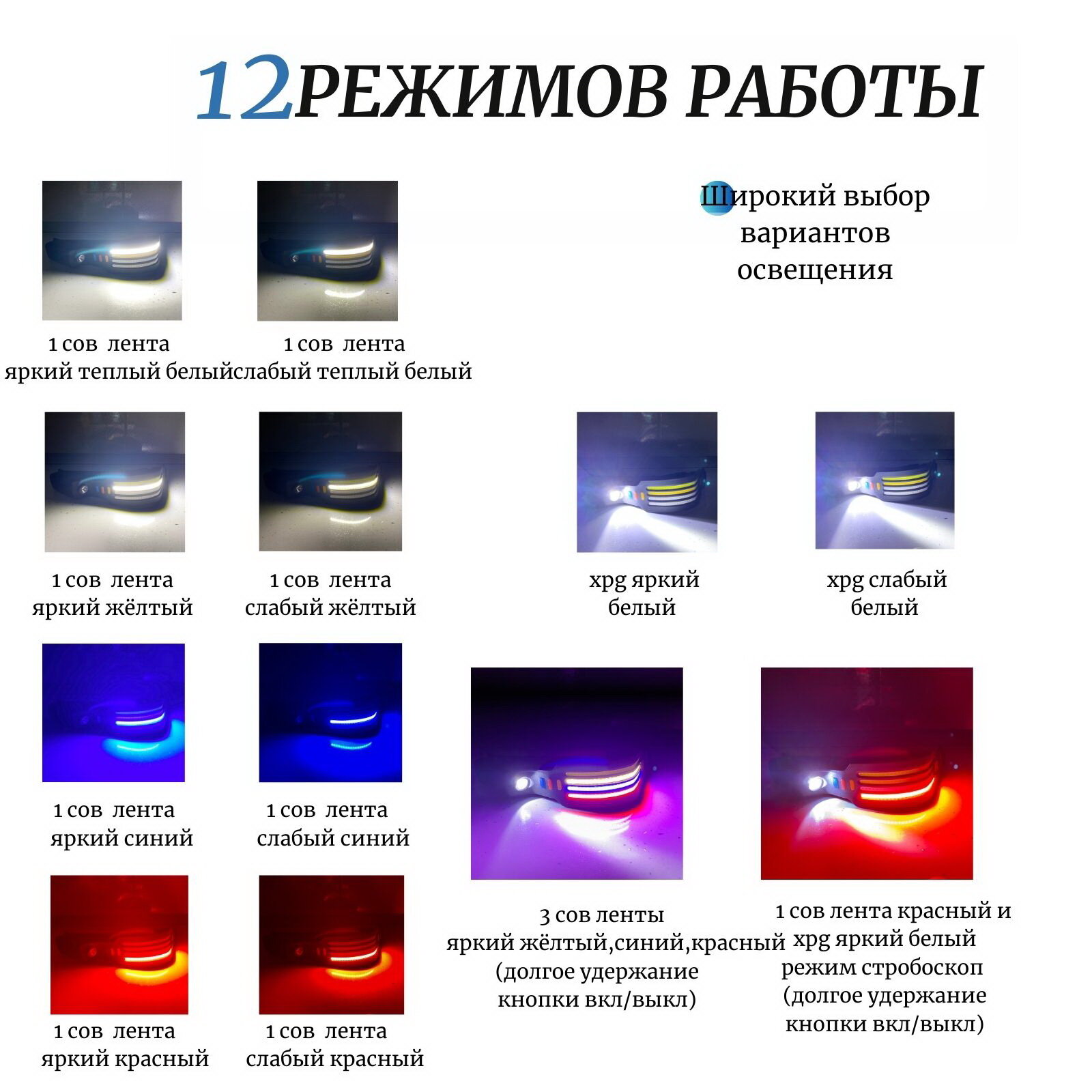 Отзывы на Налобный светодиодный фонарь Огонь с 12 режимами, Type-c зарядкой и включением по взмаху