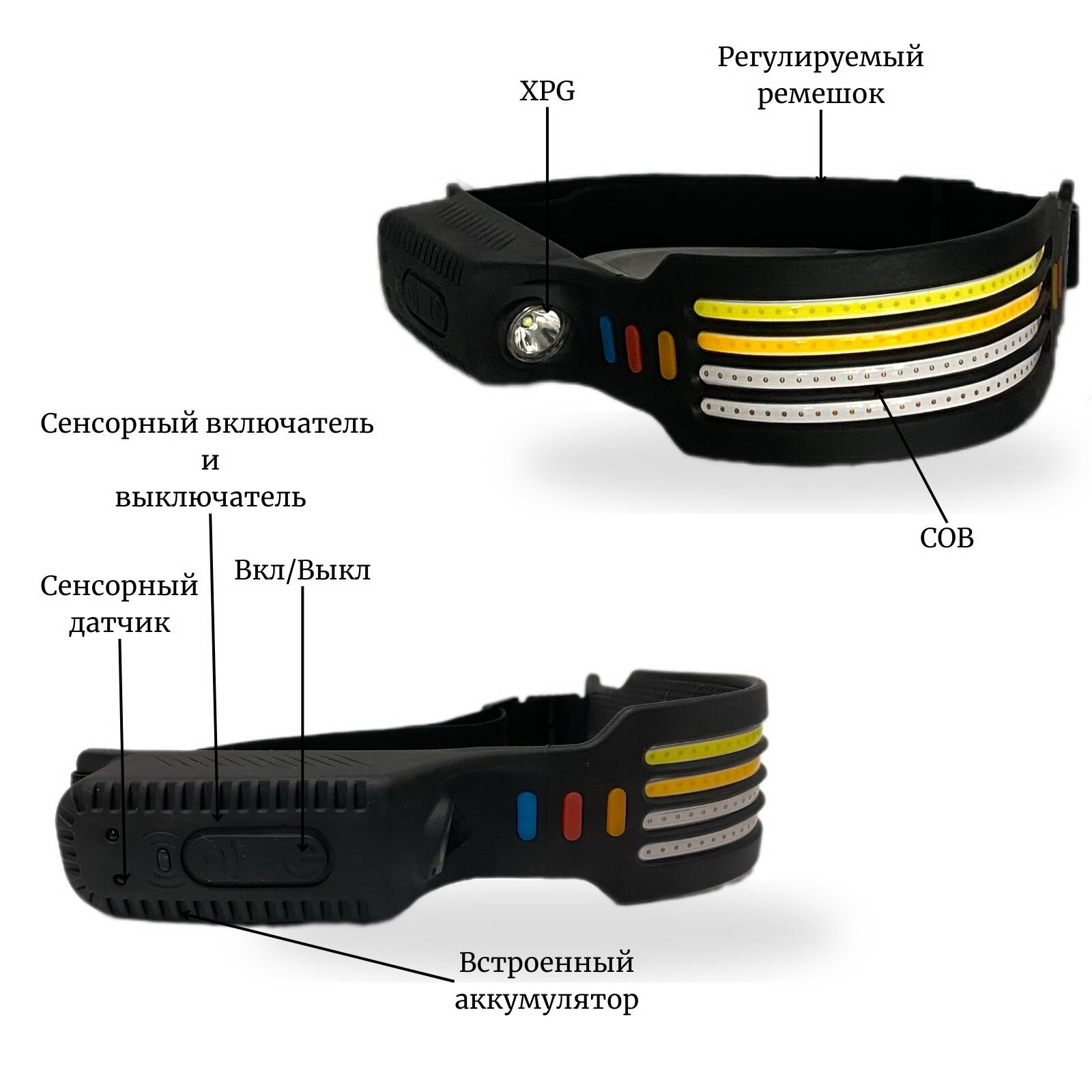 Налобный светодиодный фонарь Огонь с 12 режимами, Type-c зарядкой и включением по взмаху информация: