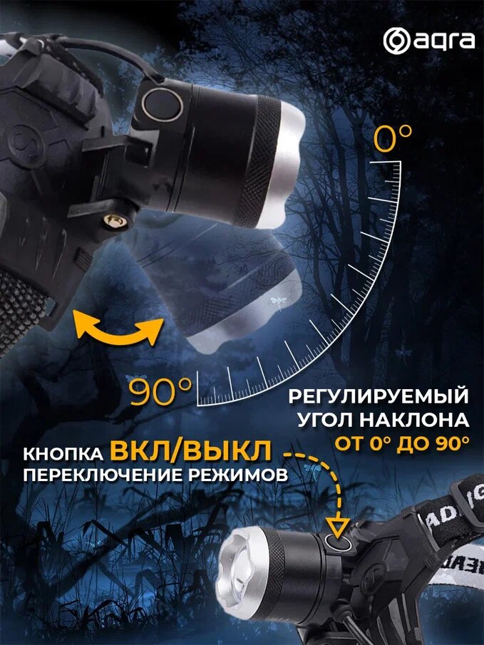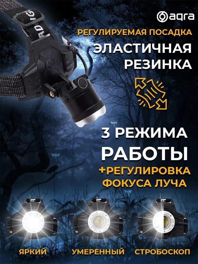 Отзывы на Налобный фонарь AQRA с зарядкой USB, 1800 люменов, 10000 часов, с зарядкой