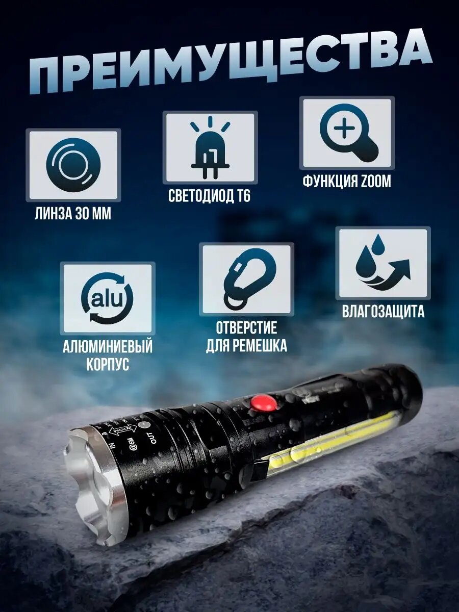 Отзывы на Фонарь аккумуляторный светодиодный фонарь фонарик аккумуляторный, с аккумулятором 18650, с магнитным держателем, мощный, светодиод T6-26
