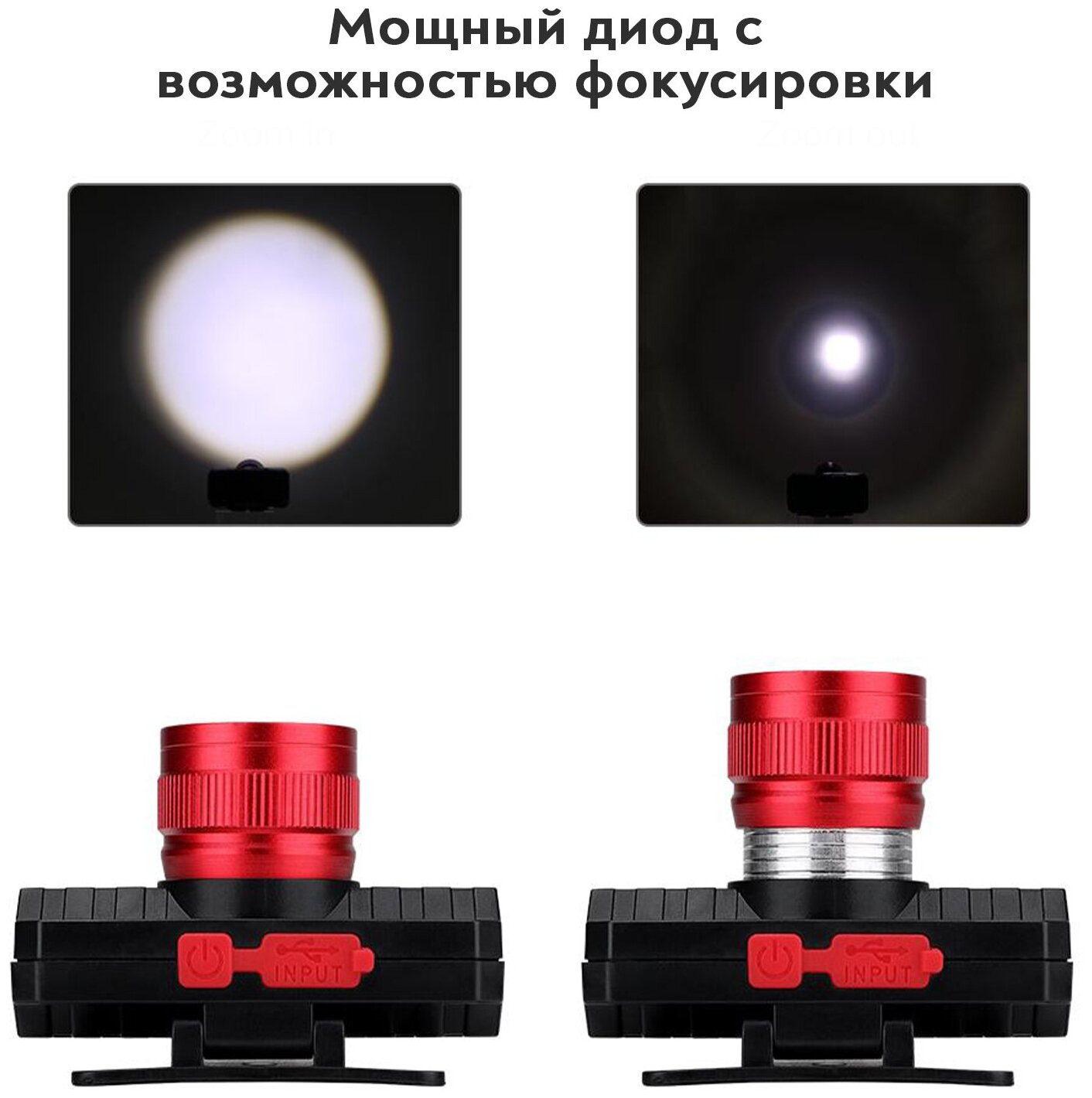 Фонарь налобный аккумуляторный мощный светодиодный SimpleShop для кемпинга с зумом/ Тактический походный яркий фонарик