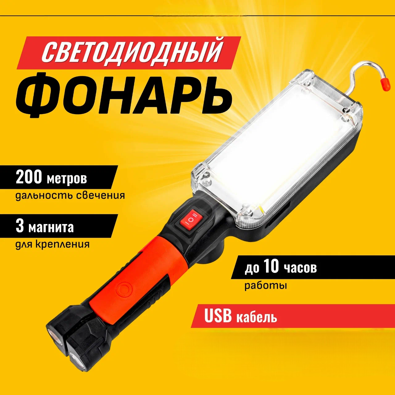 Фонарик ручной аккумуляторный светодиодный/фонарь переносной для ремонта автомобиля/ручной прожектор с магнитом