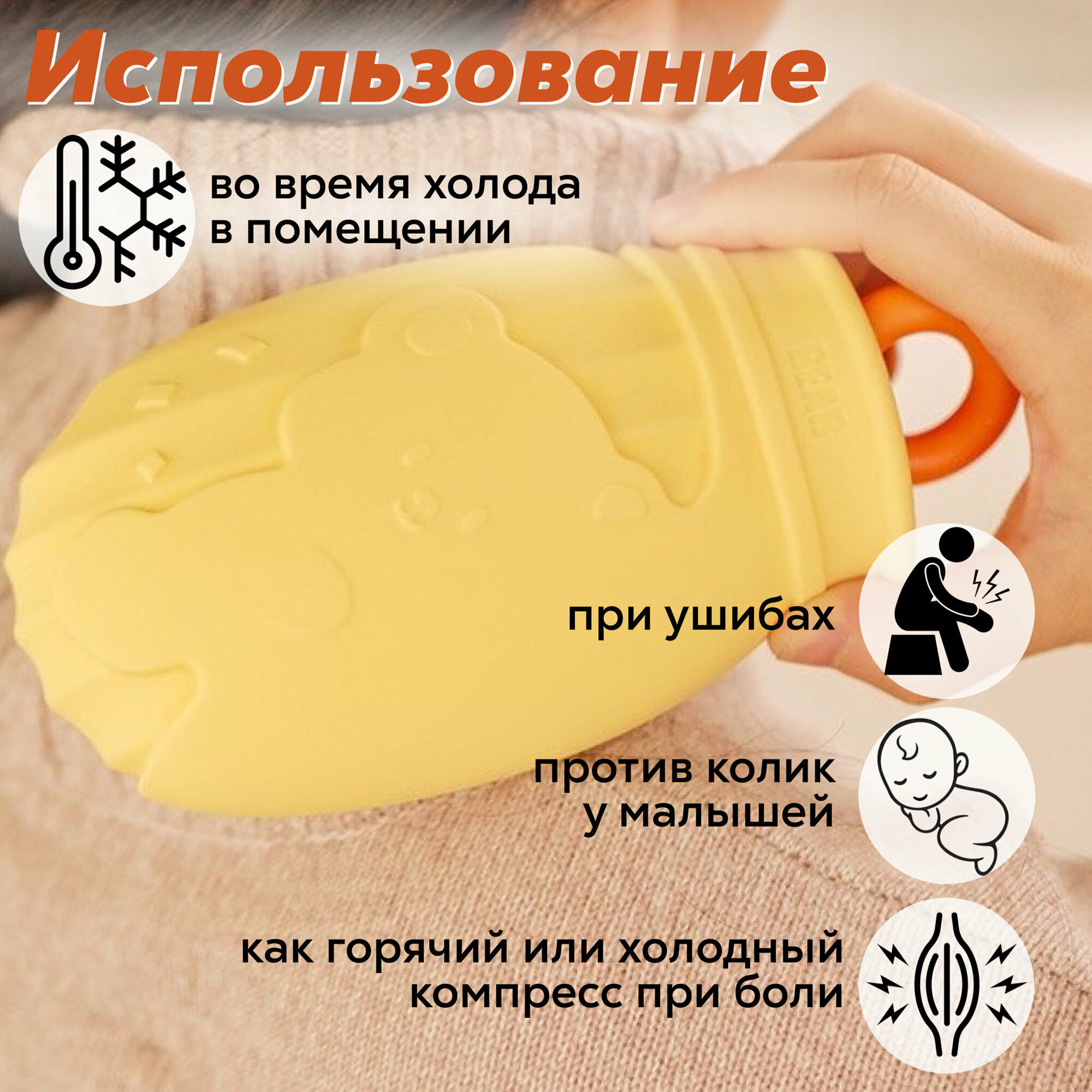 Грелка / Грелка резиновая / Грелка для рук / Грелка для ног / Многоразовая / 320 мл / Холодного / Горячего компресса / Желтая информация: