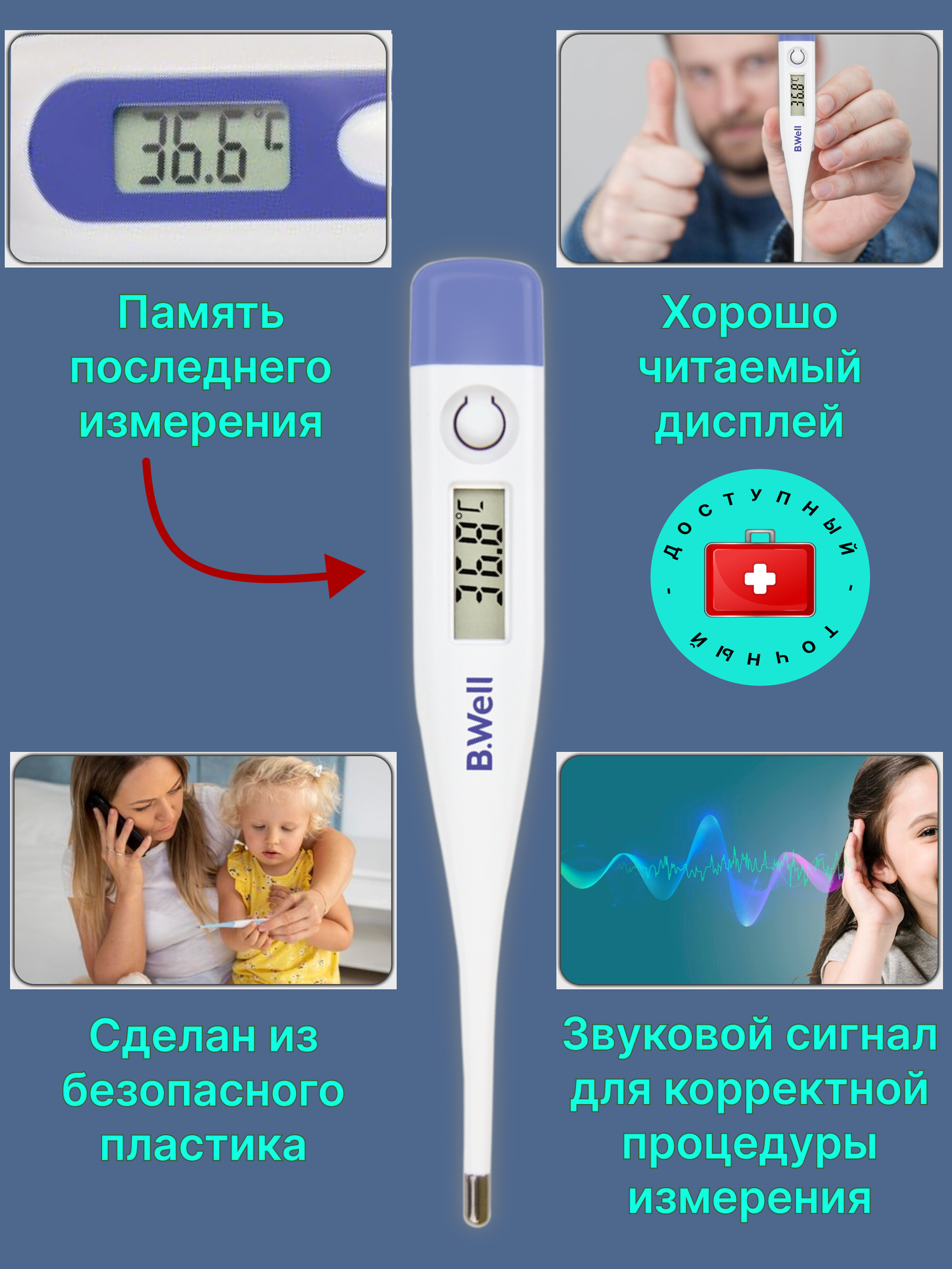 Термометр электронный B.Well PRO-05