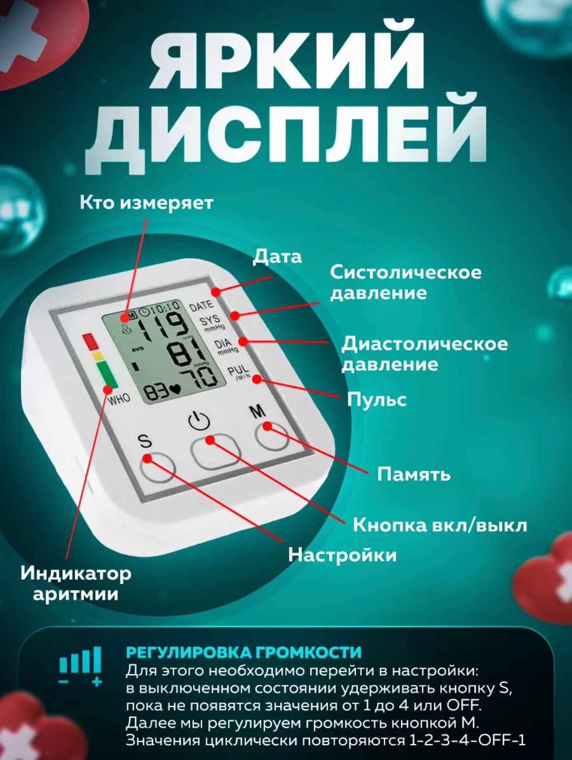 Автоматический тонометр на запястье для измерения артериального давления и пульса. Инструкция на русском. Батарейки в подарок