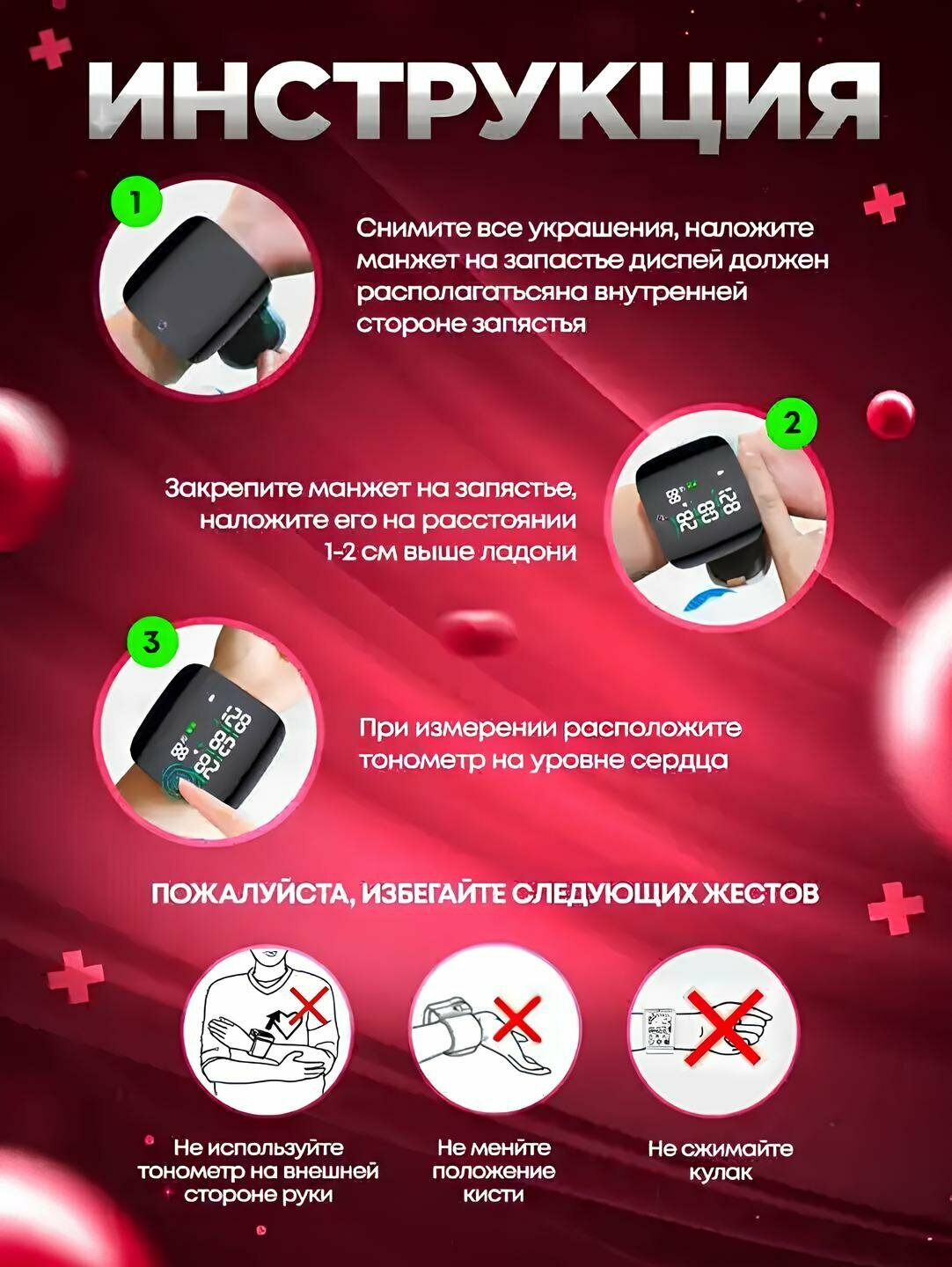 Говорящий автоматический тонометр на запястье для измерения давления информация:
