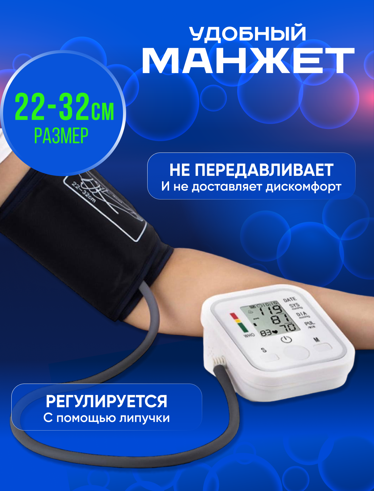 Тонометр электронный автоматический BP-618 для измерения давления, пульса / манжета универсального размера 22-32см / Цвет: Белый