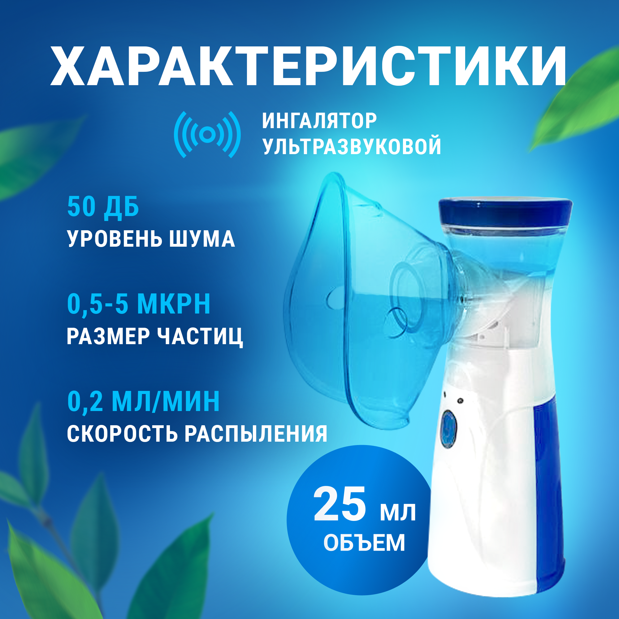 Ингалятор небулайзер портативный ультразвуковой бесшумный для детей и взрослых,для лечения заболеваний носа и горла. информация: