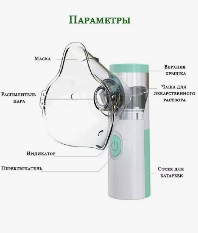 Ингалятор, небулайзер портативный для детей и взрослых, зеленый информация: