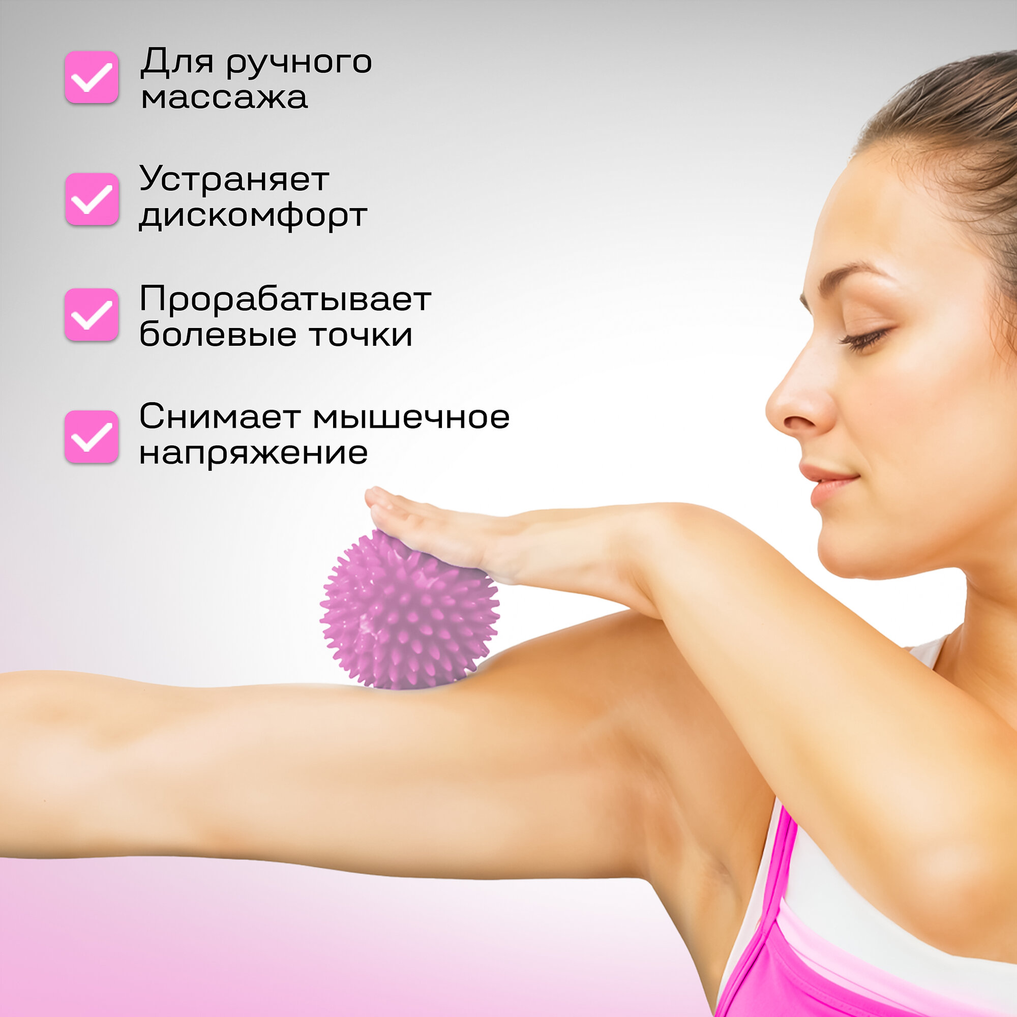 Отзывы на Мяч-шар массажный с шипами, ежик жесткий для фитнеса, йоги, пилатеса и МФР, Ø 7 см, розовый