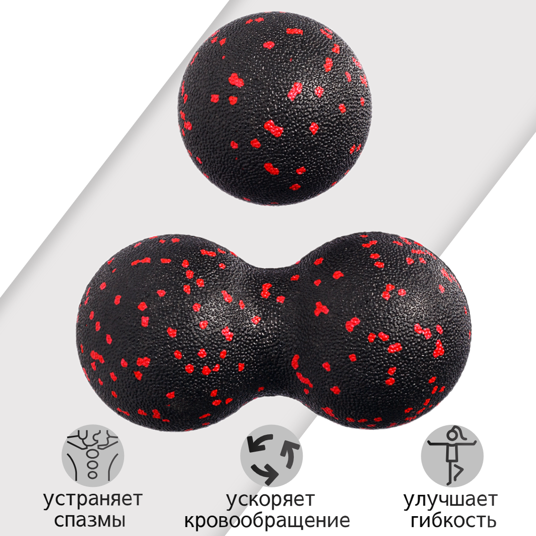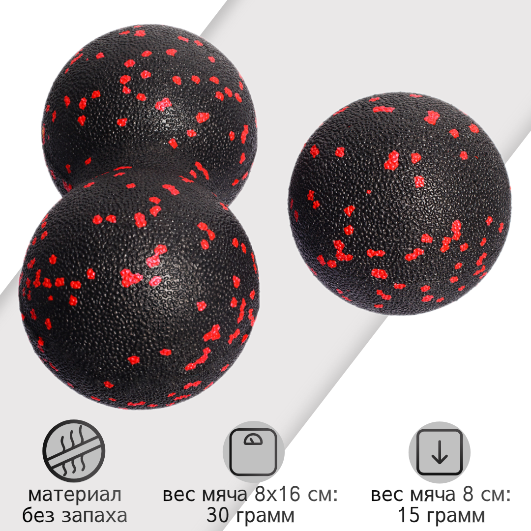 10 цен на Набор спортивных массажных мячей для МФР STRONG BODY, черно-красный: 8 см, 8х16 см, классический и сдвоенный (массажный ролик, валик, мяч для МФР)