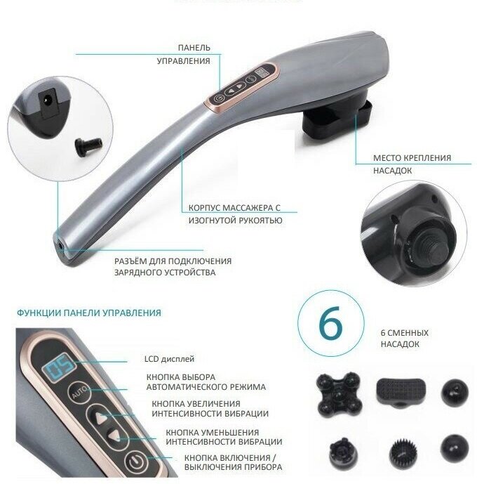 Отзывы на Массажер ,беспроводной массажер для тела MS-188, 6 насадок,электрический,вибрационный, в подарок адаптер, серый