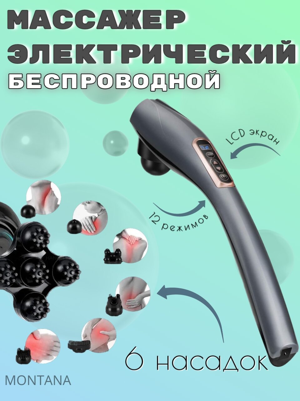 10 цен на Массажер ,беспроводной массажер для тела MS-188, 6 насадок,электрический,вибрационный, в подарок адаптер, серый