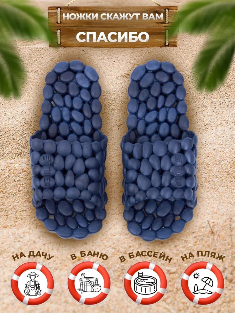 10 цен на Массажные тапочки Галька, рефлекторные, темно-синие, р.46-47