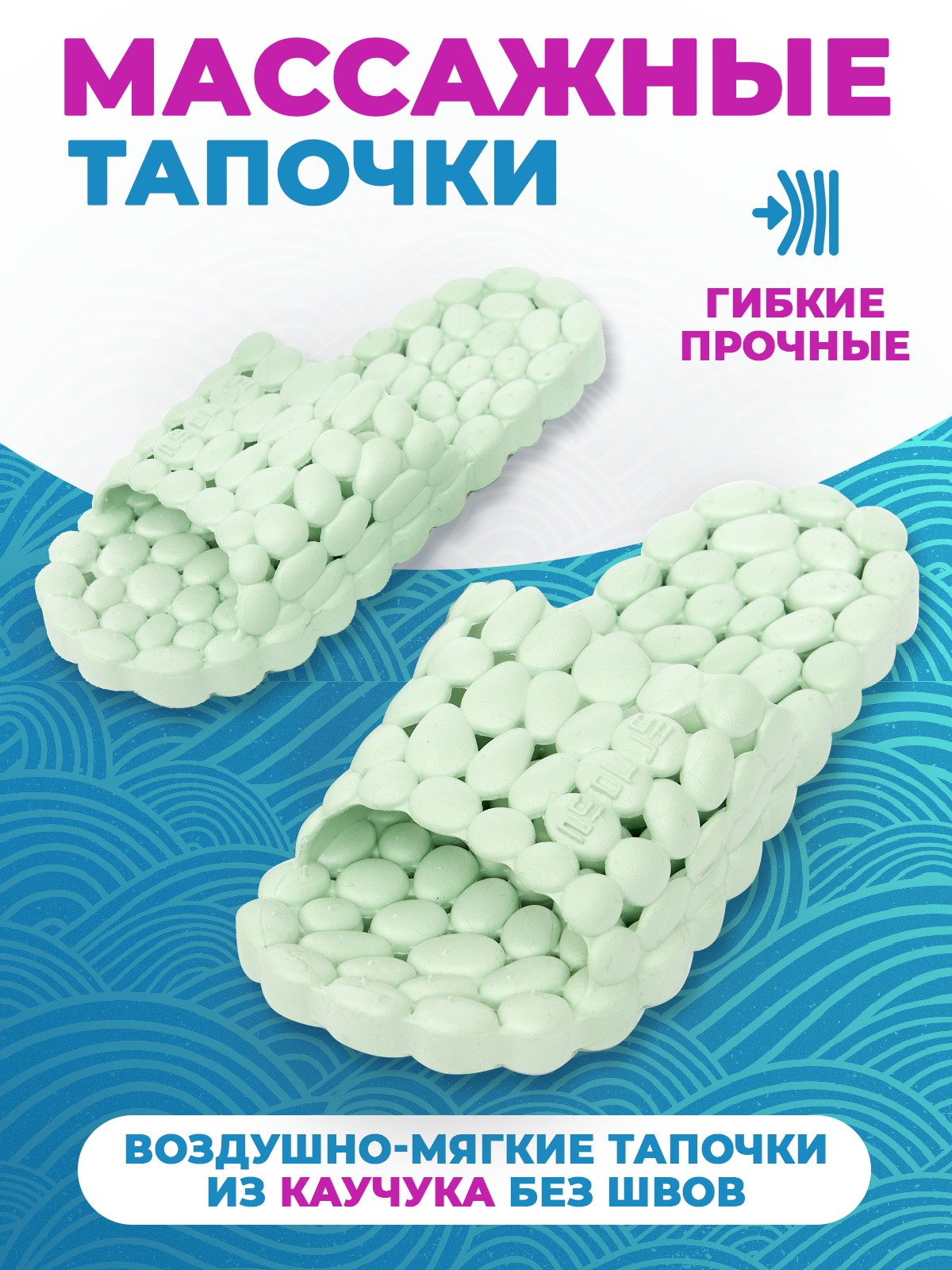 Массажные тапочки шиацу Галька, рефлекторные, мятные, р.38-39 980 ₽