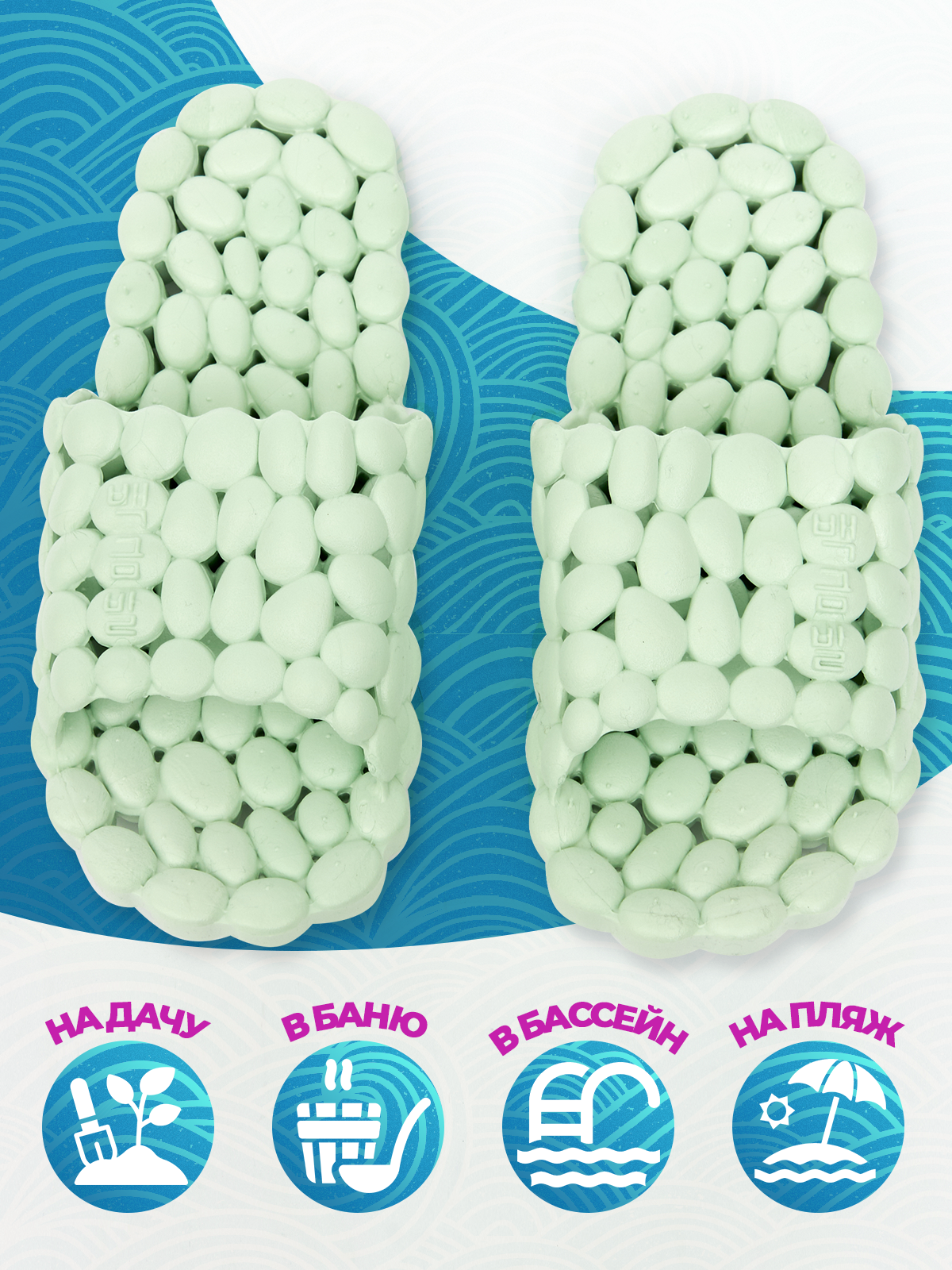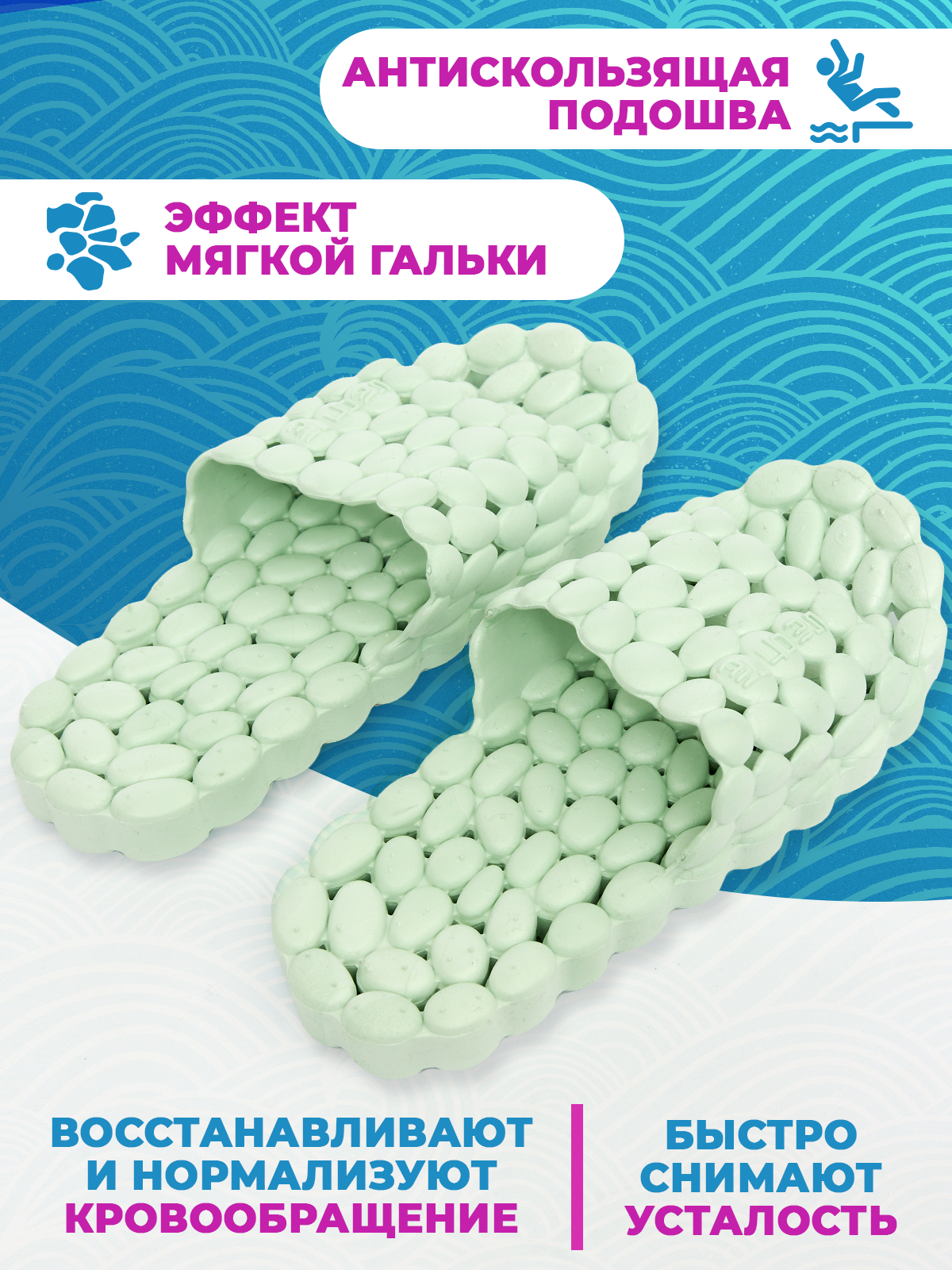 10 цен на Массажные тапочки Галька, рефлекторные, мятные, р.40-41