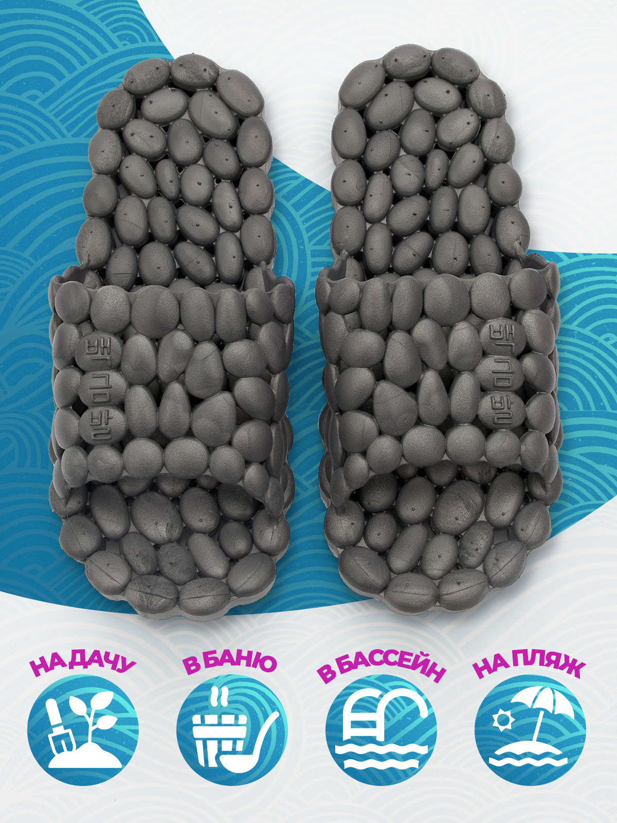10 цен на Массажные тапочки Галька, рефлекторные, темно-серые, р.46-47