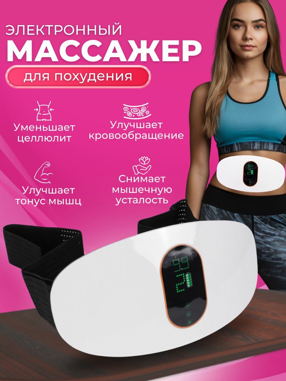 10 цен на Вибрационный массажер пояс для похудения с подогревом белый
