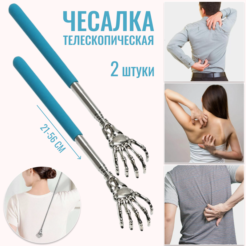 Отзывы на Чесалка для спины, 2 штуки, цвет голубой, серый металлик, выдвижная, максимальная длина 56 см