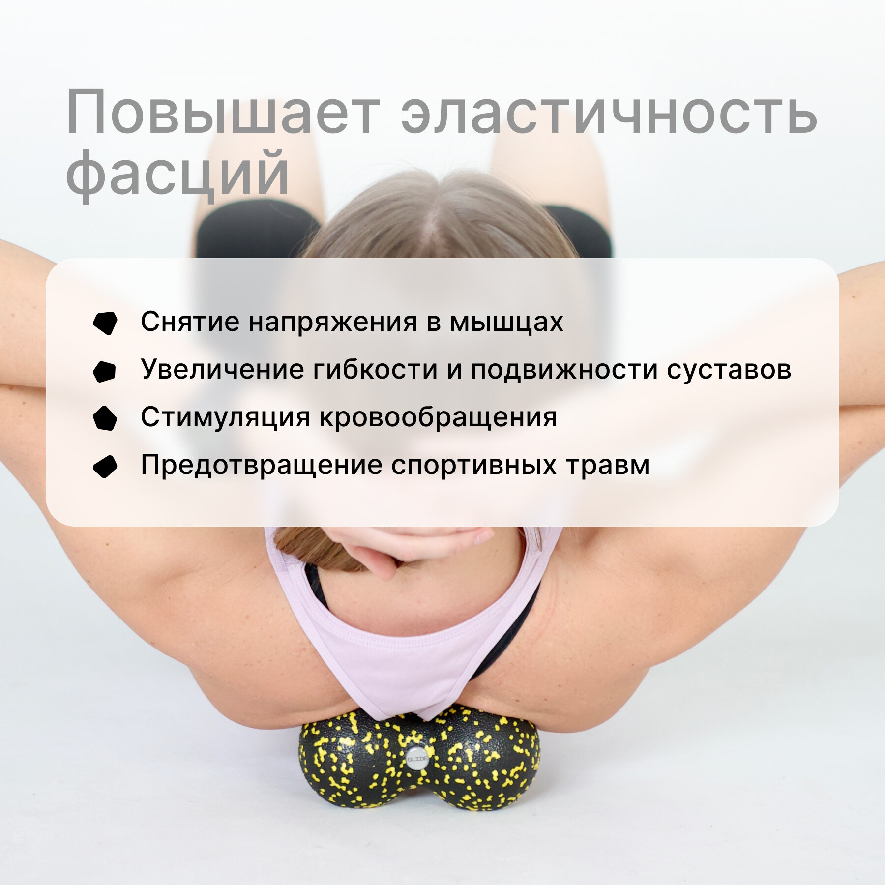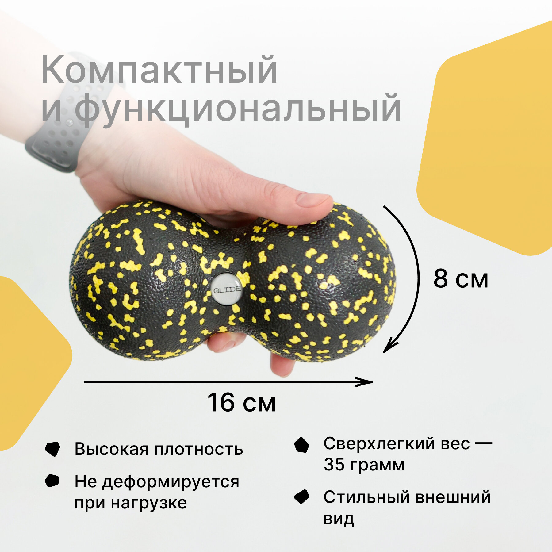 Отзывы на Мячик массажный двойной Glide Roll для пилатеса и йоги. Масажный мяч для МФР, ролик массажный, желтый, черный, 16х8см