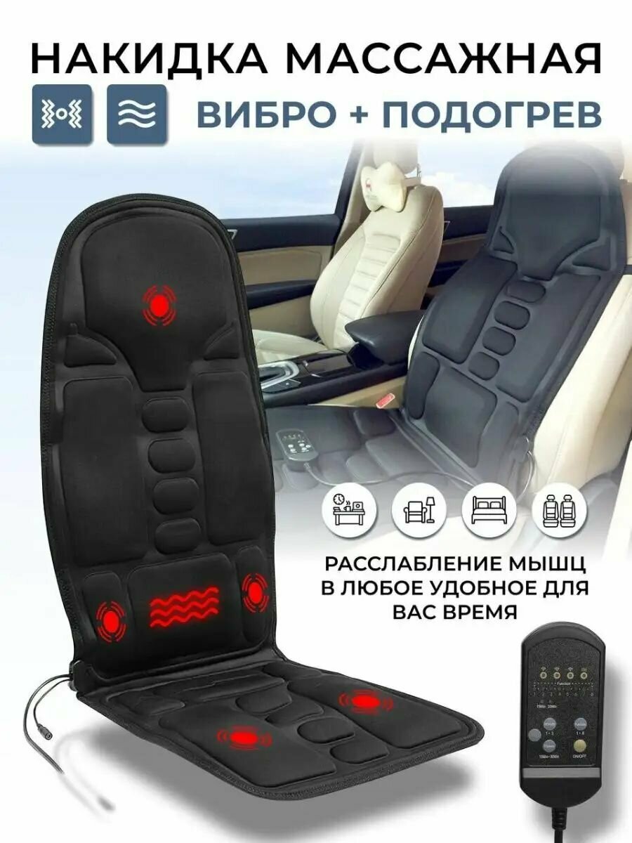 Массажная накидка с подогревом и вибрацией / Вибромассажер на кресло автомобиля