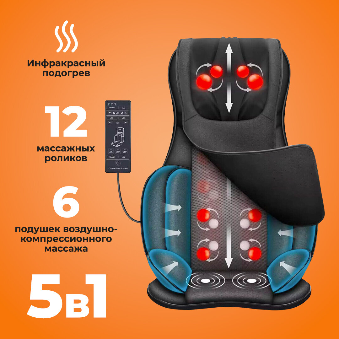 Отзывы на Массажная накидка для дома и офиса с инфракрасным прогревом и 12 роликами, вибрационный, воздушно-компресионный массаж Dykemann Genesung NS-34