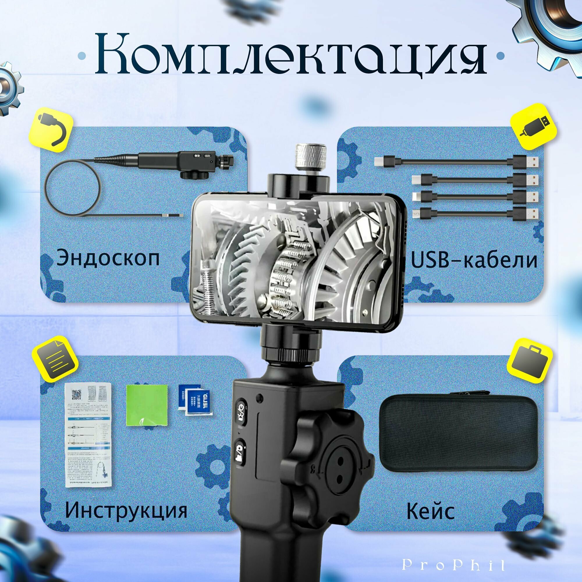| Комплектация | 1 * USB-бороскоп 1* Руководство пользователя 1 * Usb-кабель (для IOS, Android TYPE-C) 1 * Коробка для переноски |