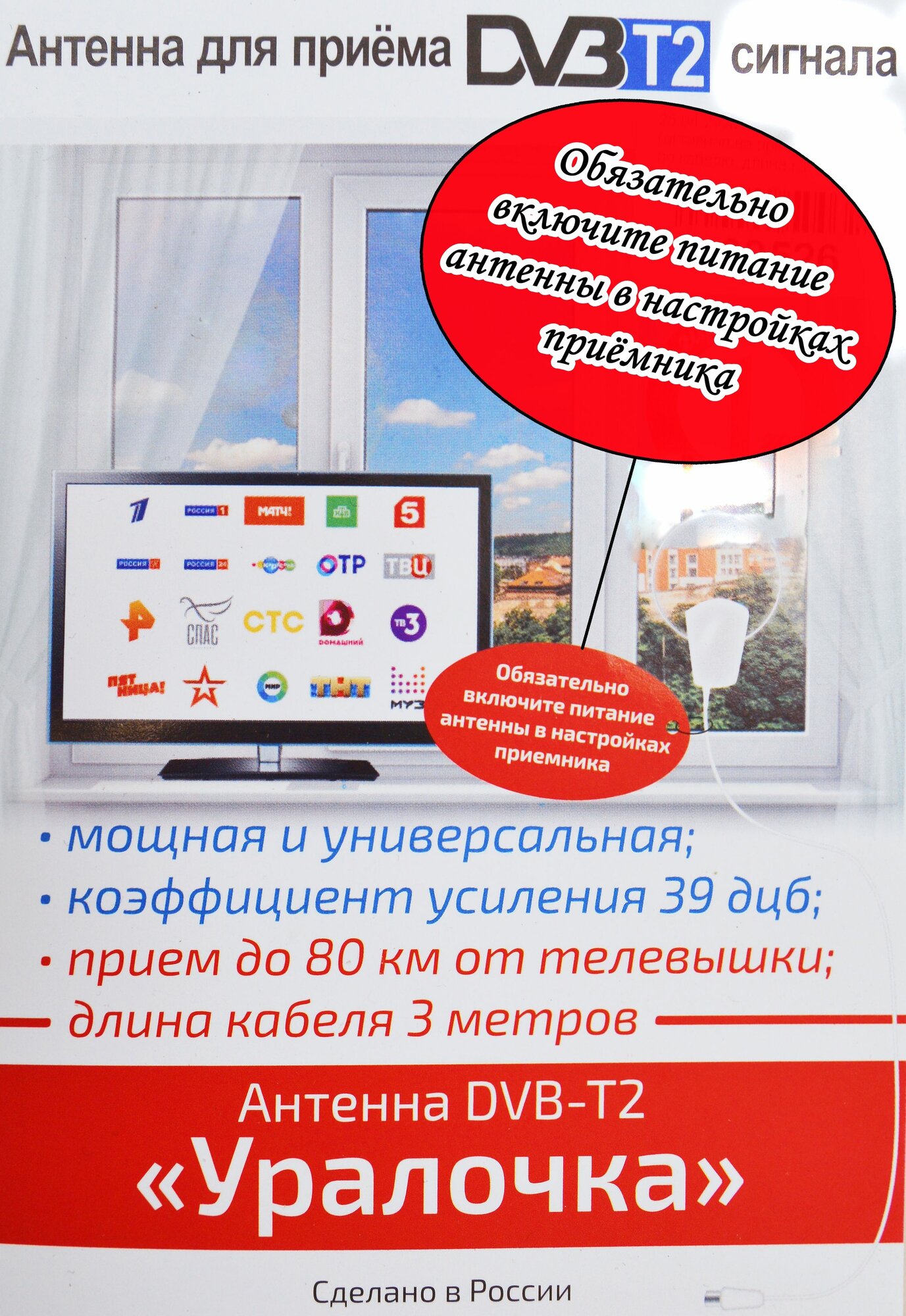 Антенна комнатная Уралочка DVB-T2 5В активная (3 метра) информация: