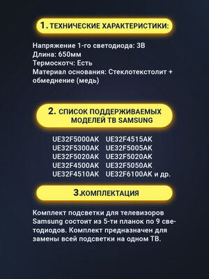 Отзывы на Подсветка для ТВ Samsung UE32F5000AK UE32F5300AK UE32F5020AK UE32F4500AK ( 2013SVS32H D2GE-320SCO-R3 ) (комплект)