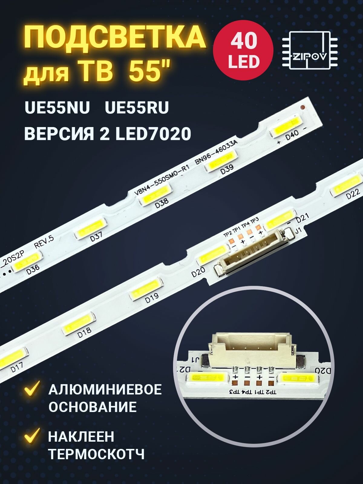 Подсветка для ТВ Samsung 55" UE55NU7300U UE55NU7170U UE55NU7120U UE55NU7100U UE55NU7140U / Версия 2, LED 7020 (комплект 2шт) информация: