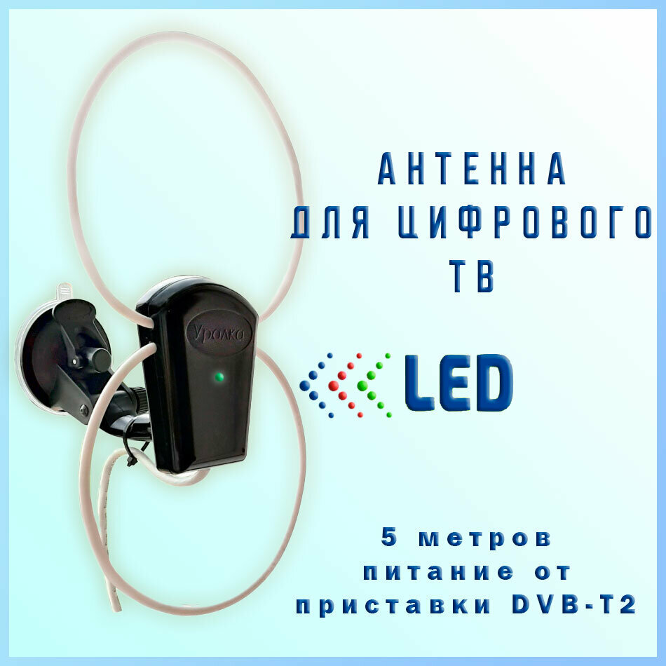 Антенна активная для цифрового DVB-T2 ТВ, с кронштейном-присоской уралка УР-5МД, 5 метров информация: