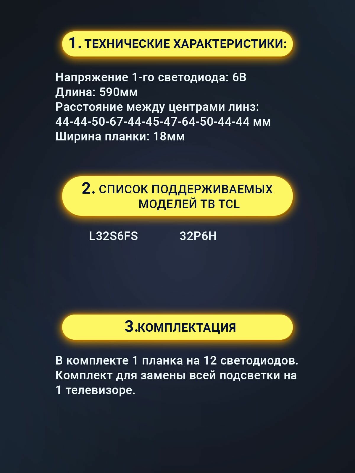 Подсветка для TCL L32S6FS 32P6H маркировка LVW320NEAL 32HR330M12A0 4C-LB3212-HR01J 32K20JD 32GM16F 32R4A (комплект 1 линейка 12 диодов) информация: