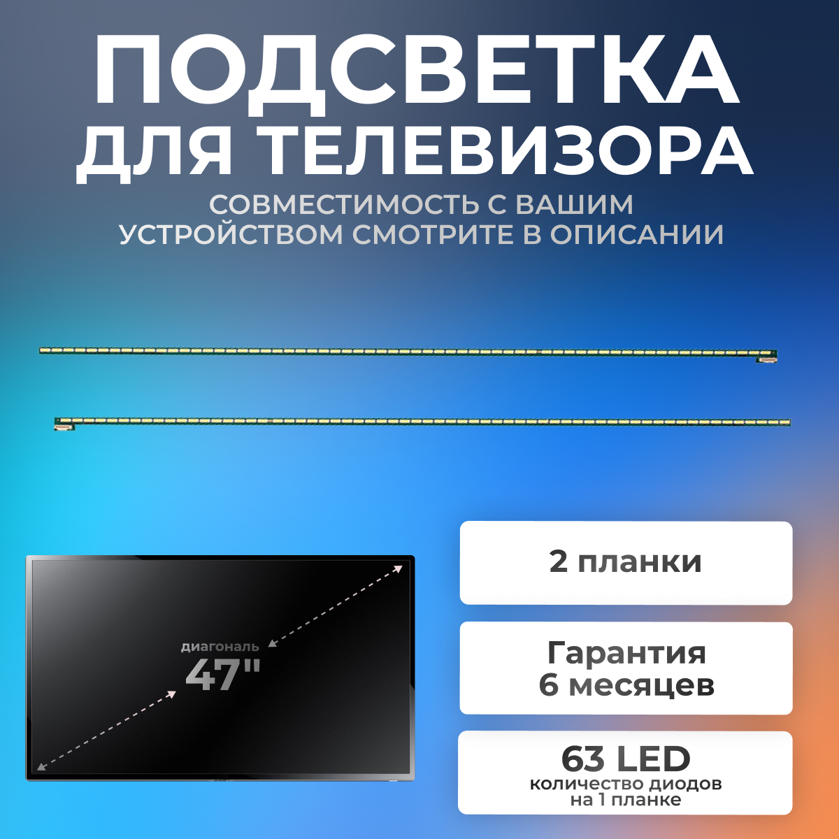 Подсветка для LG 47LA660V, 47LA662V, 47LA690V, 47LA790V, Philips 47PFL6007T и др 47" 3V 63 led (комплект 2 шт) 522mm информация: