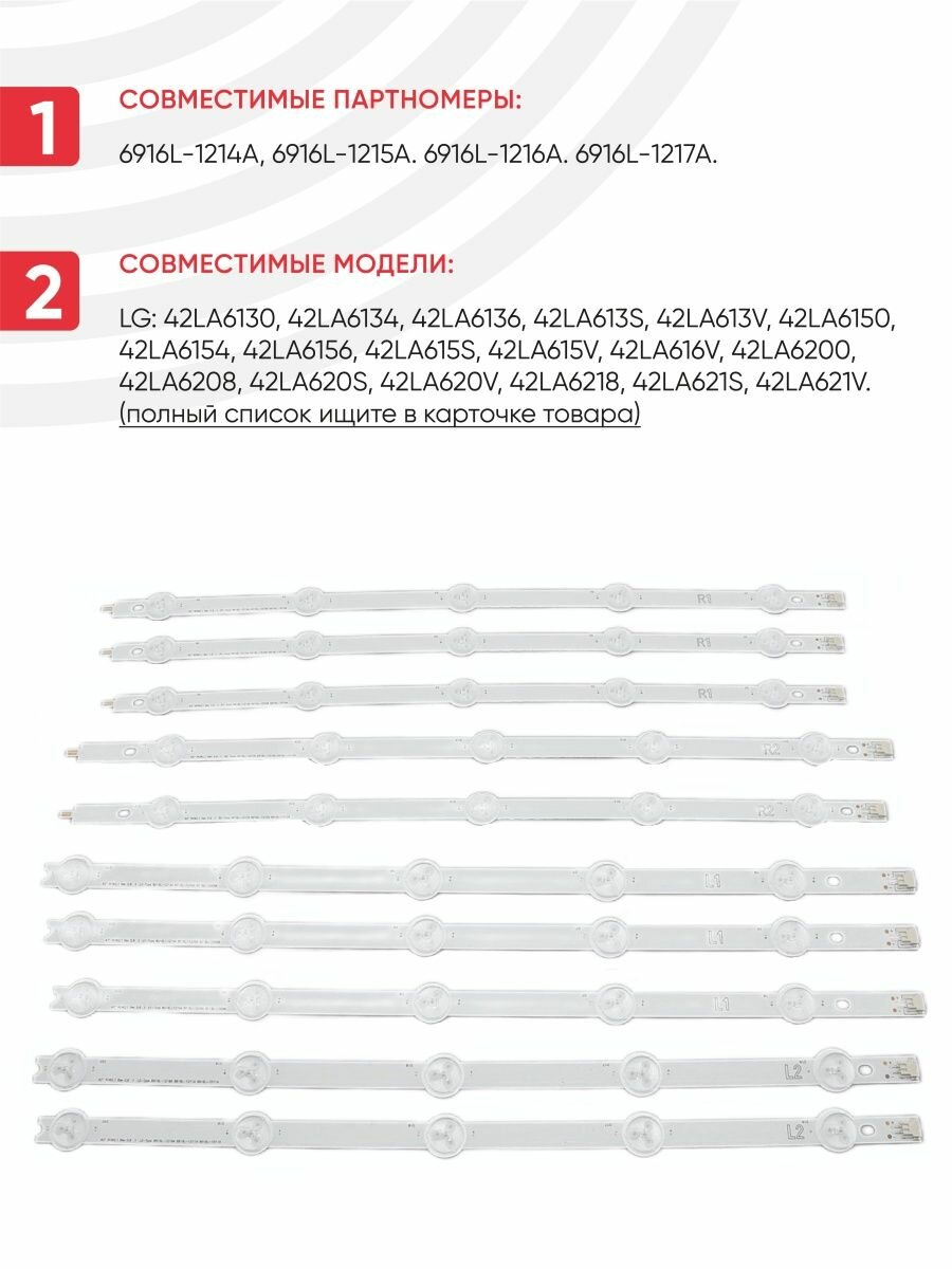 10 цен на LED подсветка (светодиодная планка) для телевизора LG 42LN, 42LA, 42" 6916L-1214A, 6916L-1209A (комплект 10 шт)